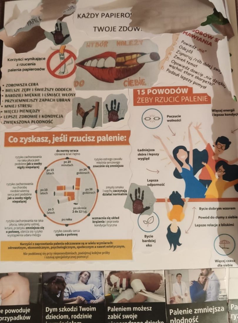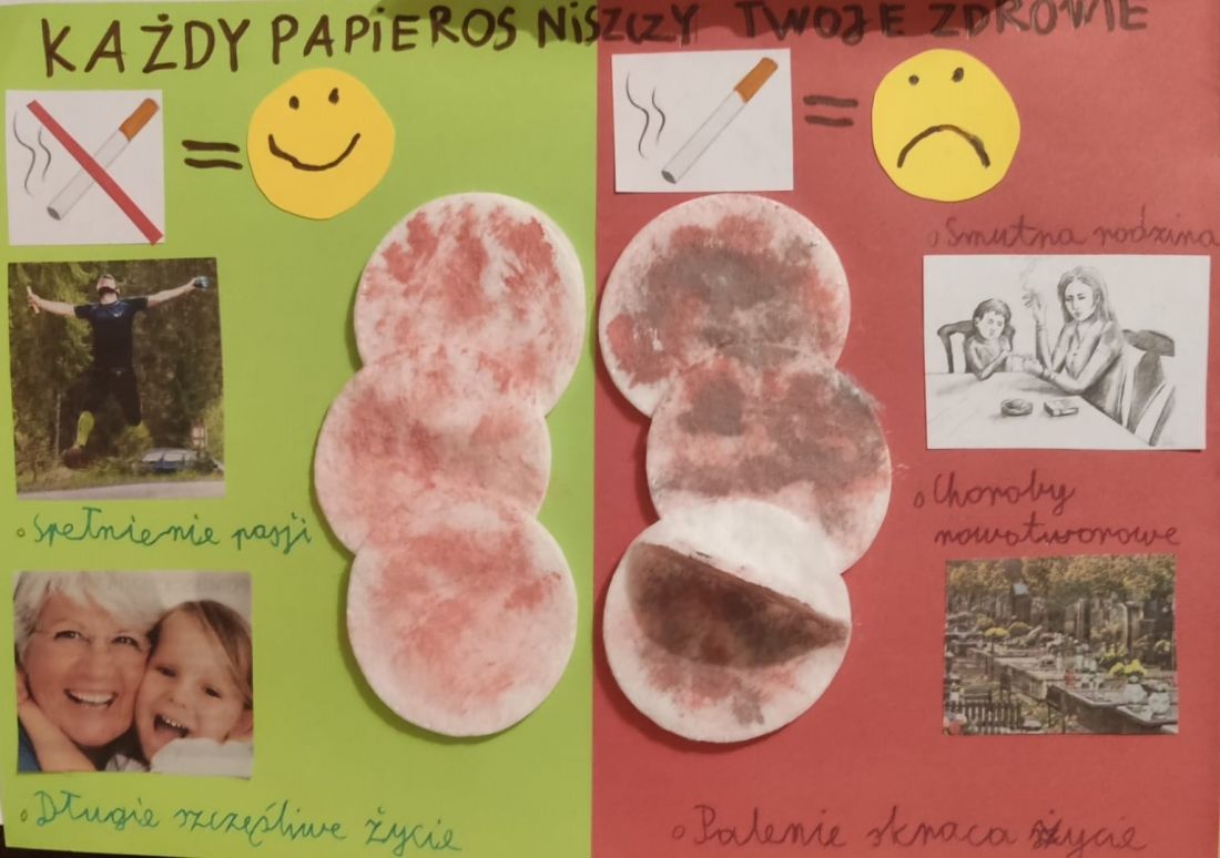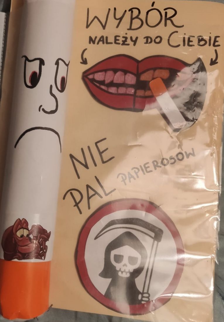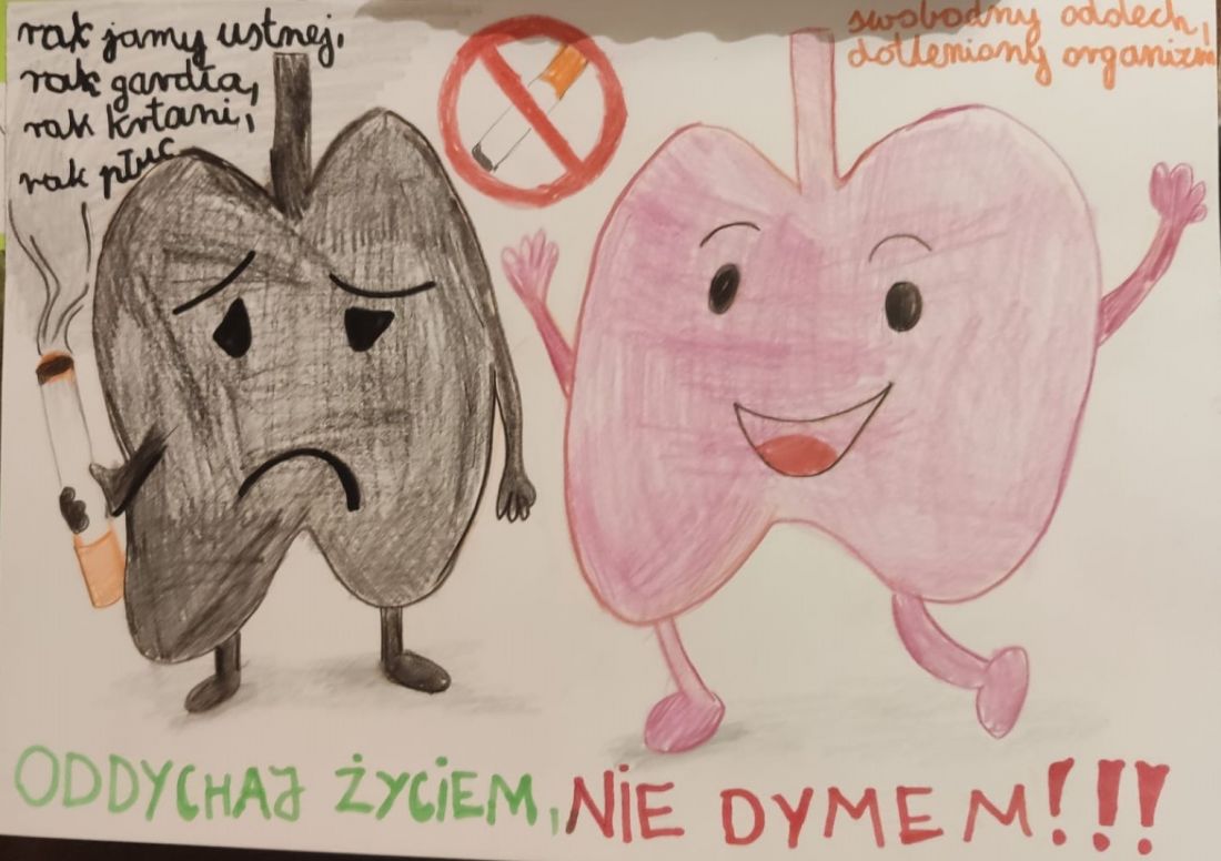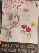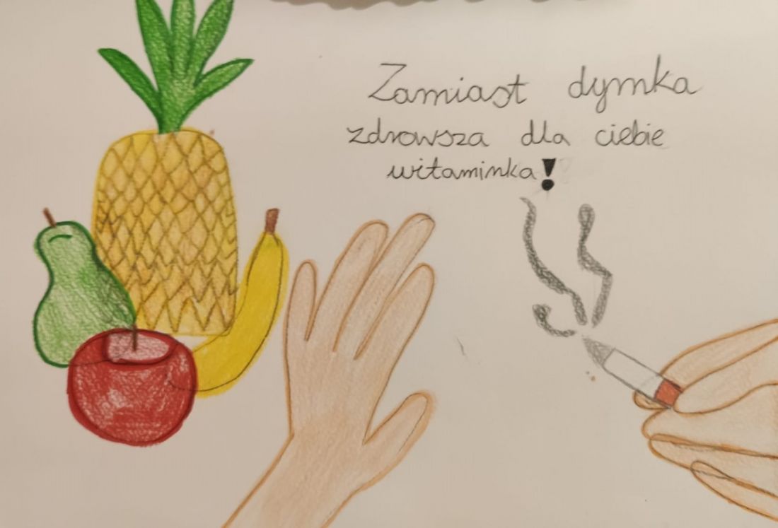 W ramach obchodów Światowego Dnia bez Tytoniu uczniowie klas czwartych uczestniczyli w konkursie plastycznym pod hasłem: „Każdy papieros niszczy Twoje zdrowie”. Konkurs organizowany był przez Powiatową Stację Sanitarno-Epidemiologiczną w Cieszynie, a jego cele to: promowanie zdrowego stylu życia oraz edukacja najmłodszych w zakresie negatywnych skutków palenia tytoniu i stosowania nowoczesnych produktów nikotynowych. Na konkurs napłynęły 103 prace z przedszkoli i szkół powiatu cieszyńskiego. Nasza uczennica Martyna Siwy z klasy 4c zajęła zaszczytne I miejsce, a uczniowie klasy 4b: Liliana Rybka i Maksymilian Jurka otrzymali w tym konkursie wyróżnienie. Wszyscy uczestnicy wykazali się dużą pomysłowością, kreatywnością i świadomością zagrożeń wynikających z używania produktów zawierających nikotynę. Gratulujemy :)!!!