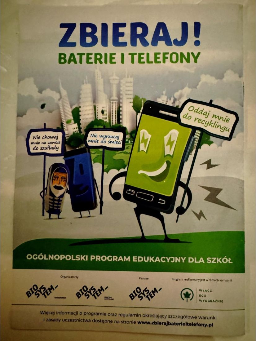 Akcja "Zbieraj baterie i telefony"Aktualności » Akcja "Zbieraj baterie i telefony"2024-06-06 Świetlica informuje, że w tegorocznej ECO-akcji "Zbieraj baterie i telefony" zebraliśmy 150kg baterii. Brawo WY!!!
