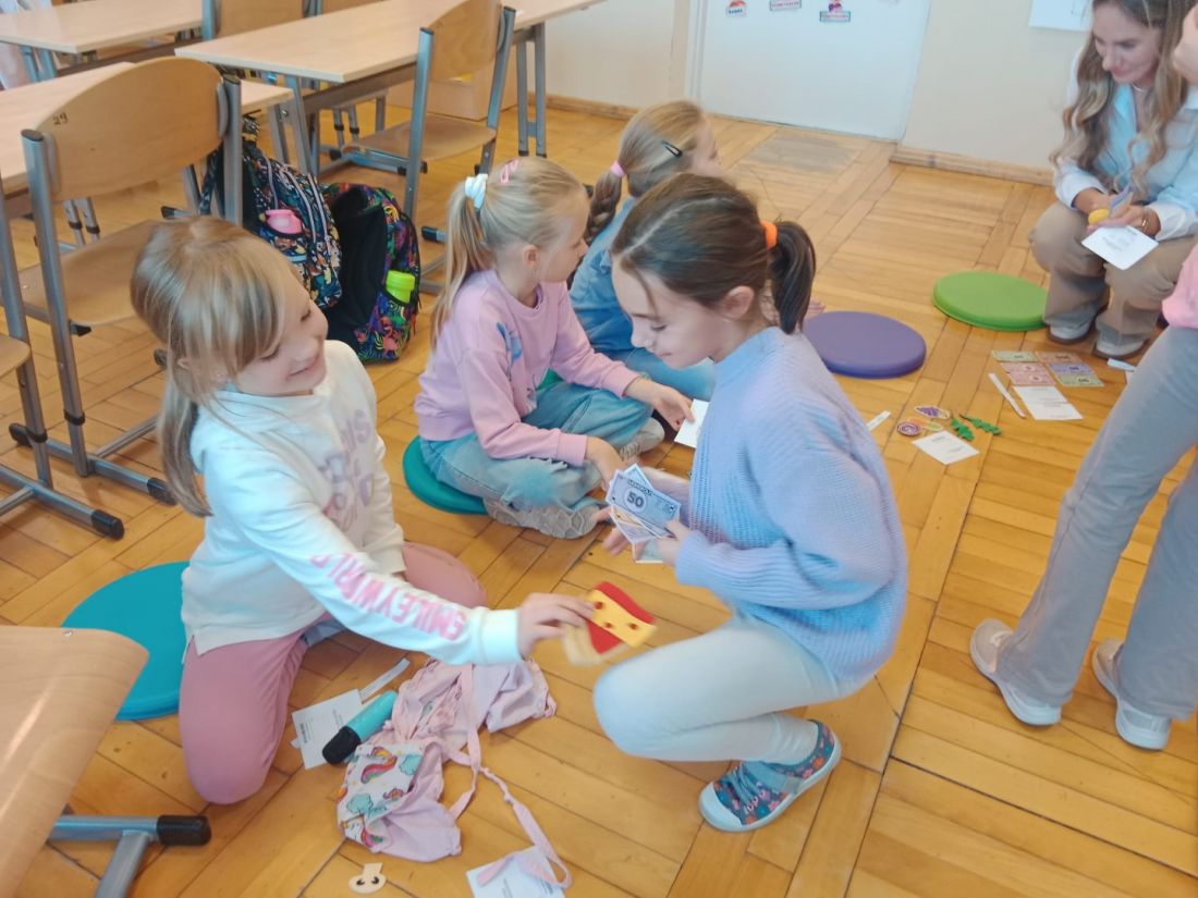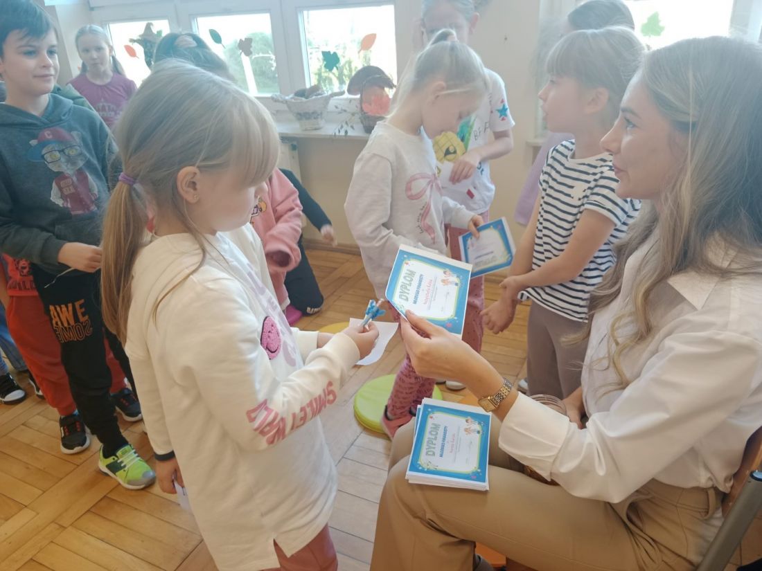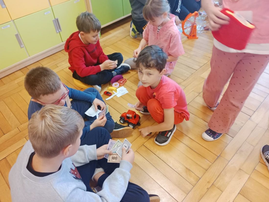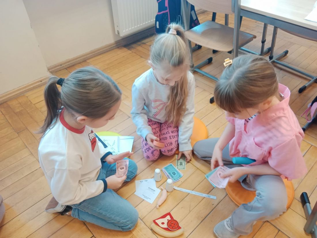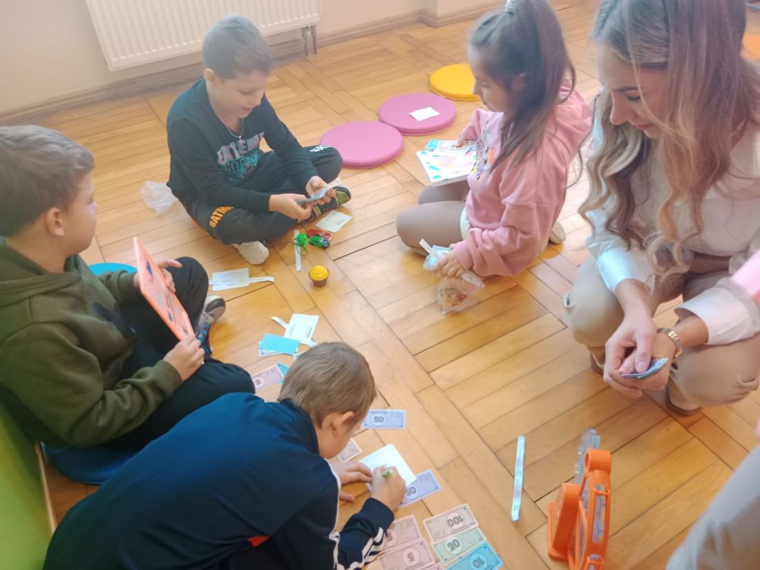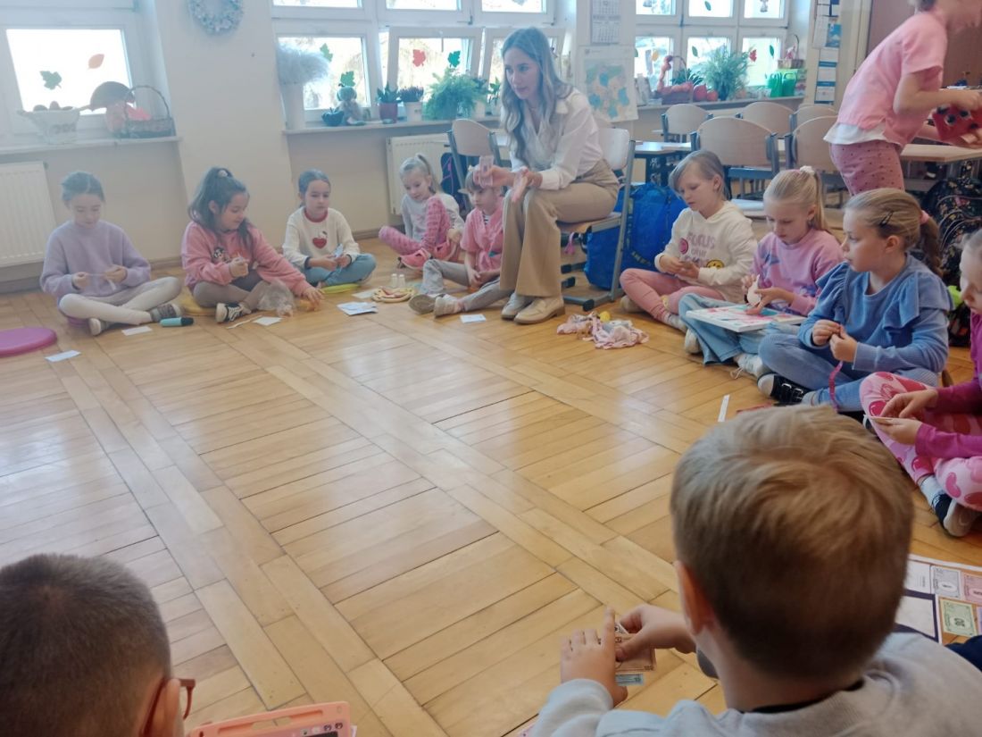 Dzisiaj dzieci z klasy 2a gościły kolejnego Gościa- mamę Liliany, która jest ekonomistką. Temat przewodni zajęć, które Pani Ala przeprowadziła nosił nazwę: „Skąd się biorą pieniądze?” Dzieci dowiedziały się, jak powstały pieniądze i jak wygląda ich obieg. Największą frajdę najmłodsi mieli podczas zabawy edukacyjnej w Małe Miasteczko, gdzie każde dziecko miało inną rolę społeczną. Uczniowie wzajemnie kupowali od siebie produkty i usługi. Zabawa miała na celu nauczyć funkcji i wartości pieniądza oraz tego, że każda praca jest ważna, bo jest częścią całego systemu. Na koniec każde dziecko otrzymało DYPLOM MŁODEGO FINANSISTY oraz słodki poczęstunek w kształcie pieniążków. Zajęcia były również wspaniałą lekcją integracji. Serdecznie dziękujemy Pani Ali za poświęcenie swojego czasu i bardzo wartościowe warsztaty.