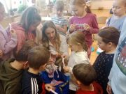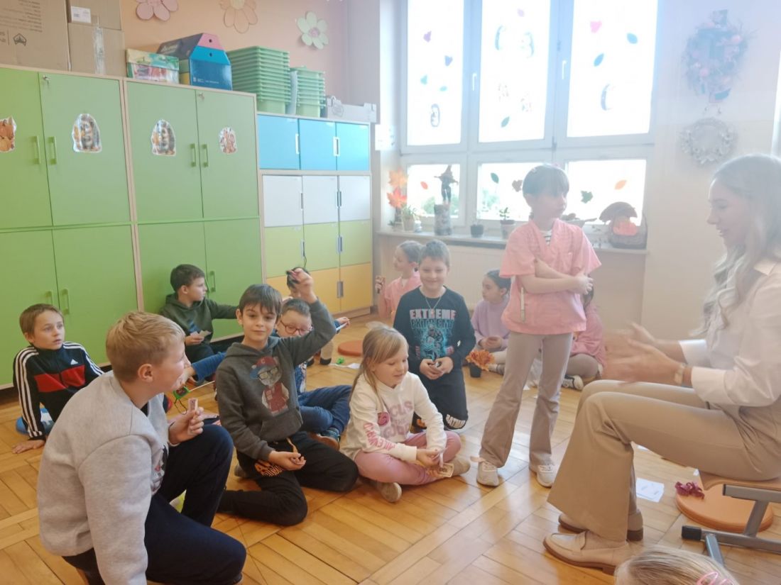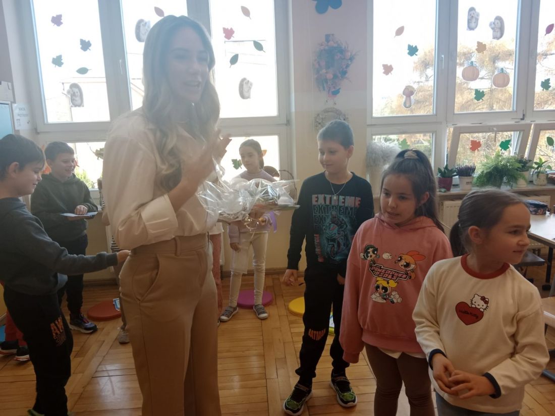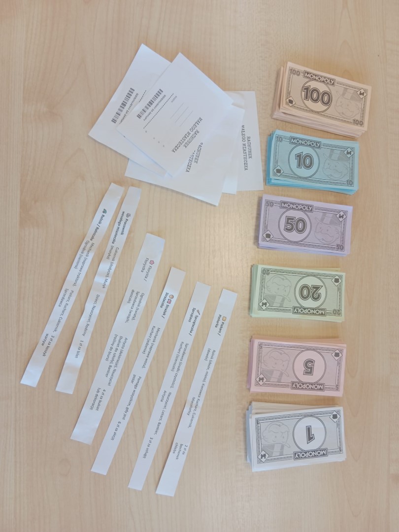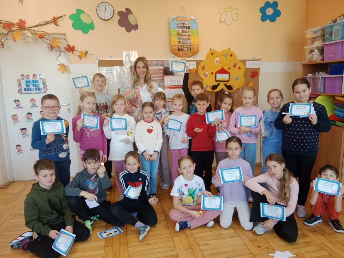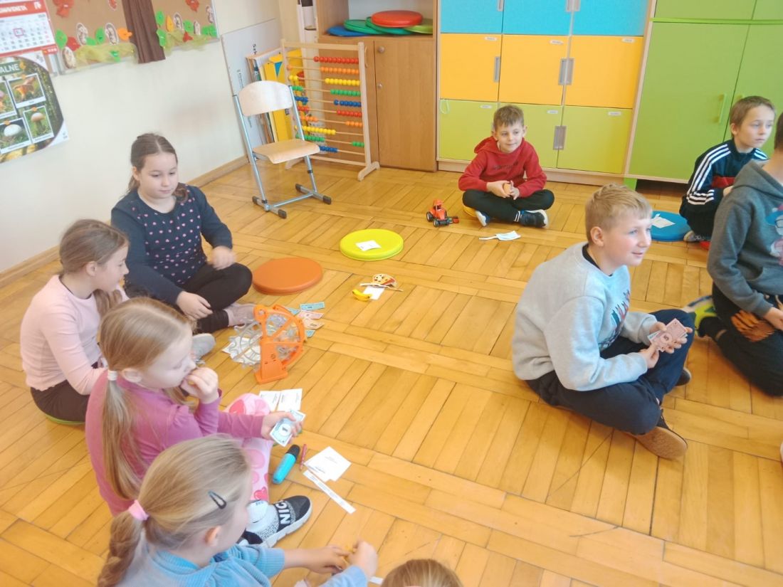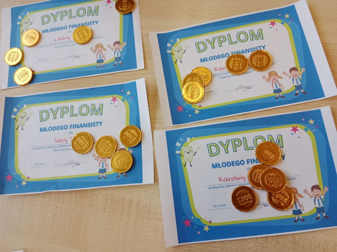 Dzisiaj dzieci z klasy 2a gościły kolejnego Gościa- mamę Liliany, która jest ekonomistką. Temat przewodni zajęć, które Pani Ala przeprowadziła nosił nazwę: „Skąd się biorą pieniądze?” Dzieci dowiedziały się, jak powstały pieniądze i jak wygląda ich obieg. Największą frajdę najmłodsi mieli podczas zabawy edukacyjnej w Małe Miasteczko, gdzie każde dziecko miało inną rolę społeczną. Uczniowie wzajemnie kupowali od siebie produkty i usługi. Zabawa miała na celu nauczyć funkcji i wartości pieniądza oraz tego, że każda praca jest ważna, bo jest częścią całego systemu. Na koniec każde dziecko otrzymało DYPLOM MŁODEGO FINANSISTY oraz słodki poczęstunek w kształcie pieniążków. Zajęcia były również wspaniałą lekcją integracji. Serdecznie dziękujemy Pani Ali za poświęcenie swojego czasu i bardzo wartościowe warsztaty.