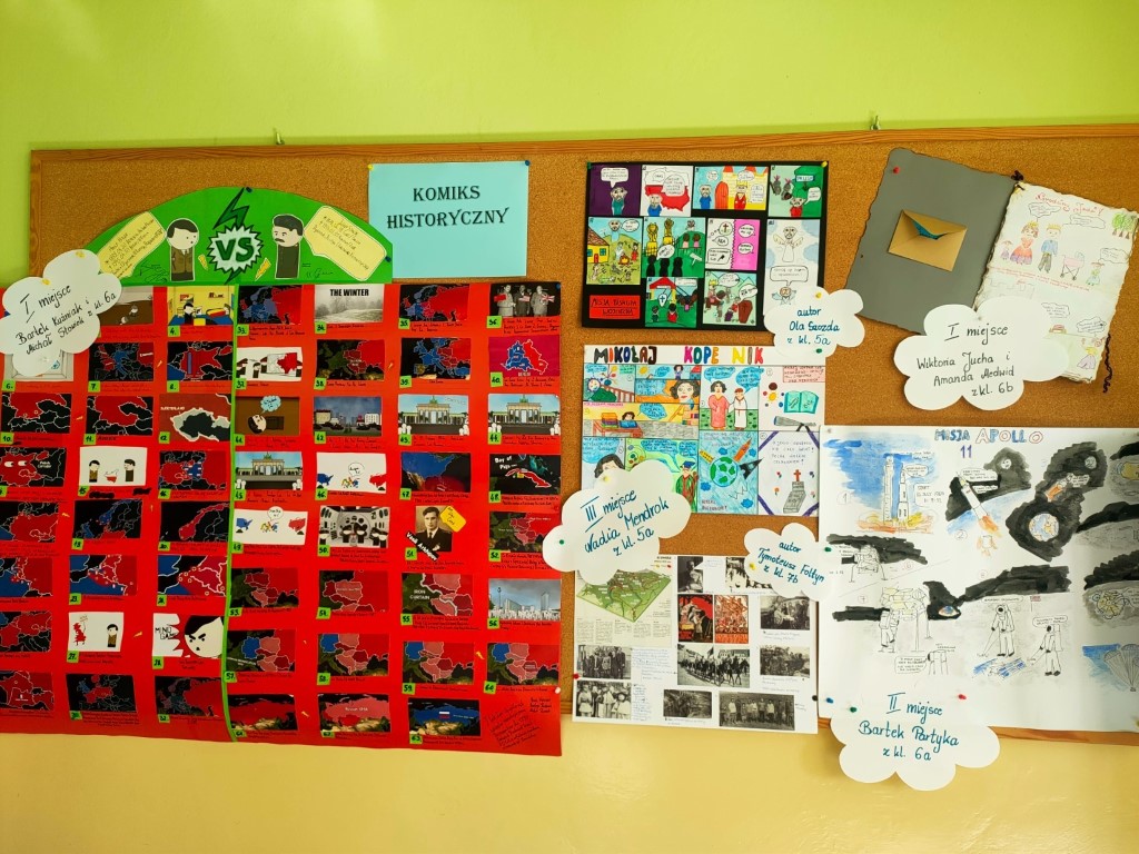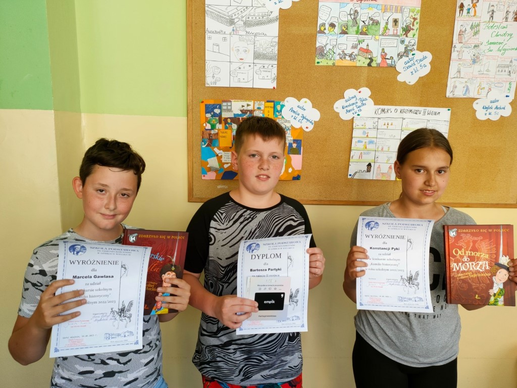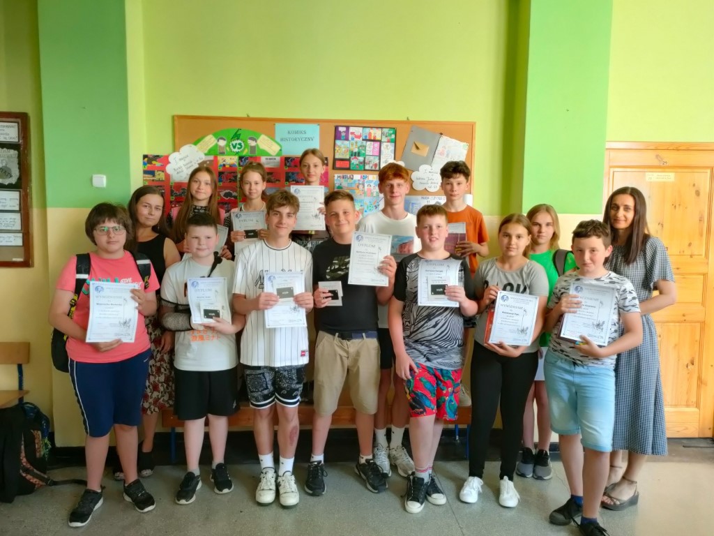19 czerwca odbyło się rozstrzygnięcie szkolnego konkursu pt. „Komiks historyczny”. Wszyscy uczestnicy zostali nagrodzeni, a najwyższe miejsca na podium zajęli: