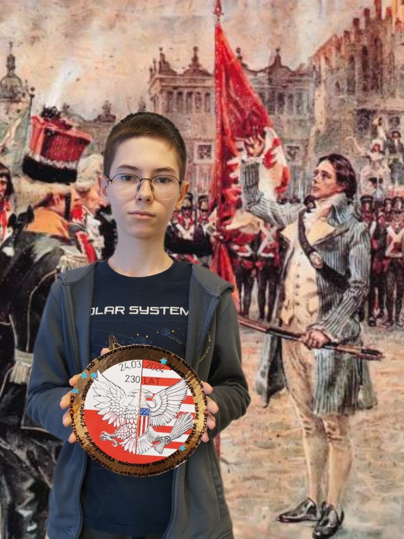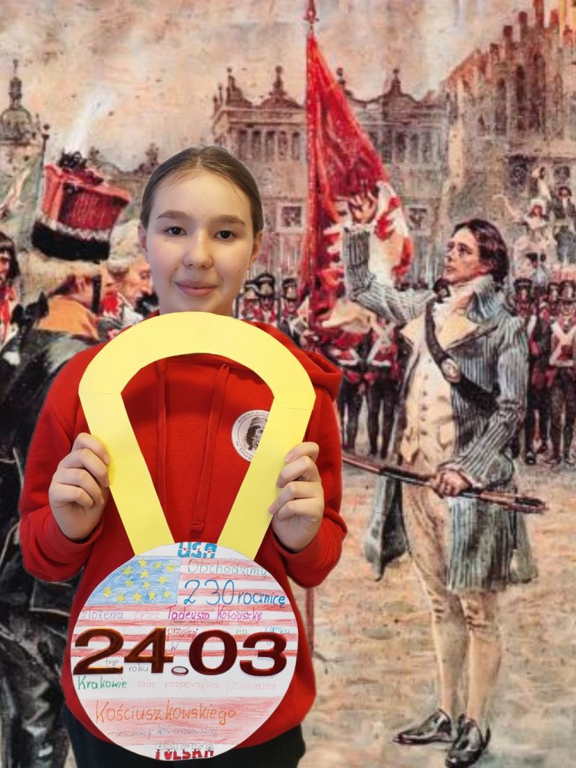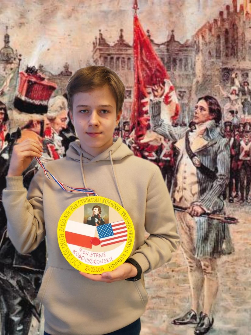 Insurekcja Kościuszkowska – ostatnia próba ratowania Rzeczpospolitej rozpoczęła się 24 marca 1794 r. W tym roku obchodzimy okrągłą 230. rocznicę tego wydarzenia, szczególnie dla nas ważną, ponieważ to właśnie tego dnia Patron naszej szkoły – Tadeusz Kościuszko złożył uroczystą przysięgę na Rynku w Krakowie. Z tej okazji uczniowie klas 6a i 6c zrealizowali projekt na historię – stworzyli medale dla Tadeusza Kościuszki. W swoich pracach uczniowie ukazali zasługi Kościuszki jako przywódcy powstania w Polsce oraz zasłużonego generała w wojnie o niepodległość Stanów Zjednoczonych Ameryki, a zatem bohatera dwóch kontynentów. Zapraszamy do obejrzenia galerii.