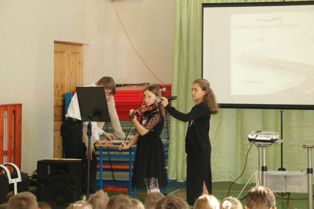 W programie znalazły się recytacje utworów Krasickiego, Norwida i Szymborskiej, muzyka Chopina oraz wspólne wykonanie pieśni patriotycznych „Legiony” i „Piechota”. Nie zabrakło także pięknej gry na skrzypcach. Całość stworzyła wzruszającą i edukacyjną podróż przez historię Polski, dostosowaną do młodszych i starszych uczniów.