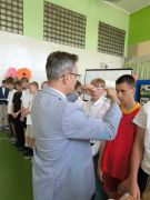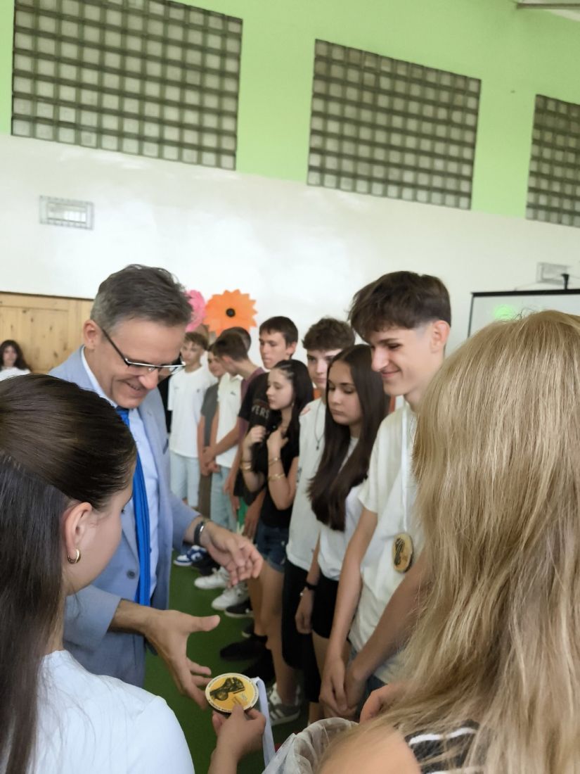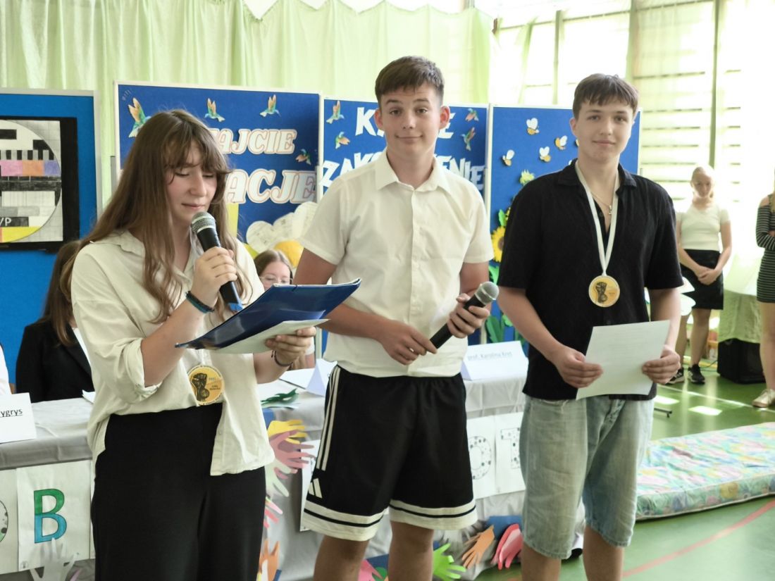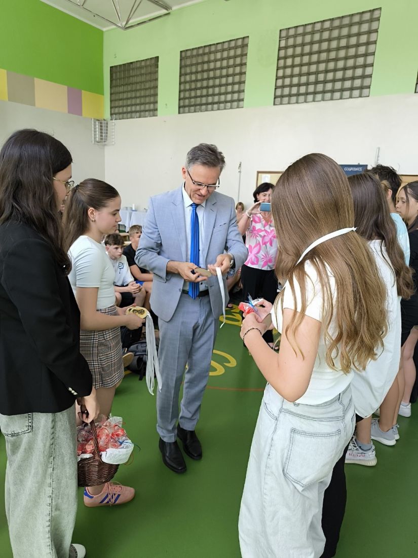 Kluczowym momentem uroczystości było wręczenie pamiątkowych medali przez p. dyrektora Marcina Janasika uczniom klas ósmych. Następnie głos zabrał p. dyrektor, który w swoim przemówieniu m.in. podkreślił zaangażowanie młodzieży w życie szkoły, a jego słowa, pełne ciepła i motywacji, zostały nagrodzone gorącymi brawami.