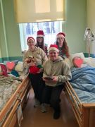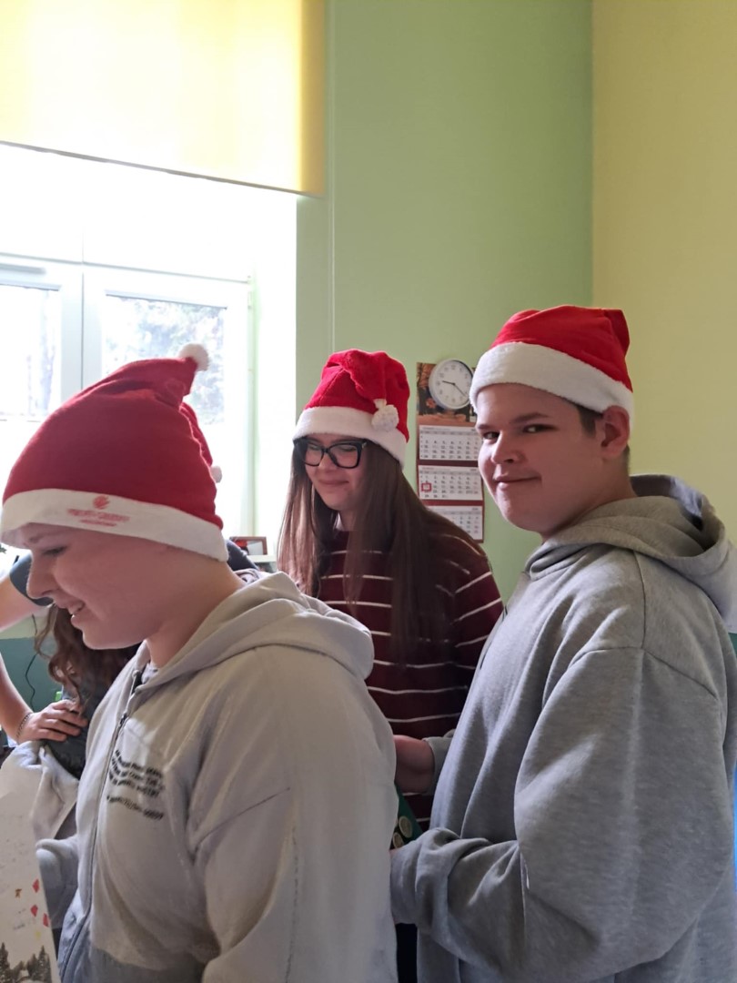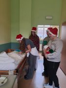 Dziś, 16 grudnia, uczniowie reprezentujący klasę 8c w składzie: Natalia, Sandra, Dawid i Maksym odwiedzili Oddział Opiekuńczo–Leczniczy w Szpitalu Sióstr Elżbietanek w Cieszynie, aby przekazać pacjentom kartki świąteczne z życzeniami Bożonarodzeniowymi, wykonane przez wszystkich uczniów naszej klasy.