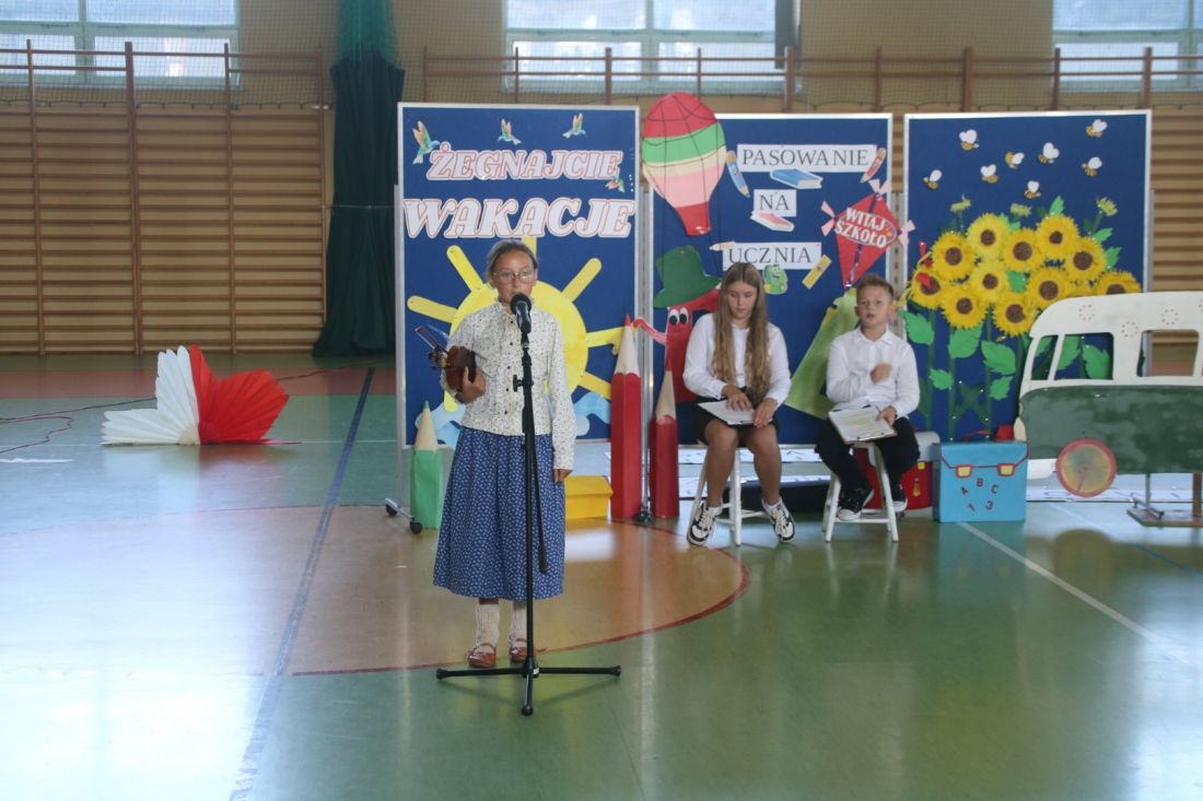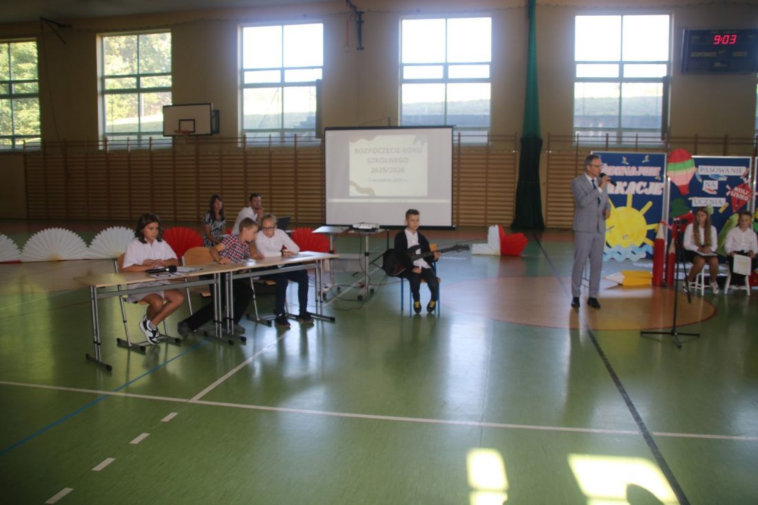 Dnia 1 września odbyła się uroczysta akademia z okazji rozpoczęcia nowego roku szkolnego 2025/2026. Występ przygotowała klasa 5a. Przedstawienie treścią nawiązywało do programu „Mam talent”. W ten sposób uczniowie zaprezentowali uzdolnienia muzyczne, recytatorskie, taneczne i matematyczne. Tego dnia odbyło się również uroczyste pasowanie uczniów klas pierwszych. ![]()