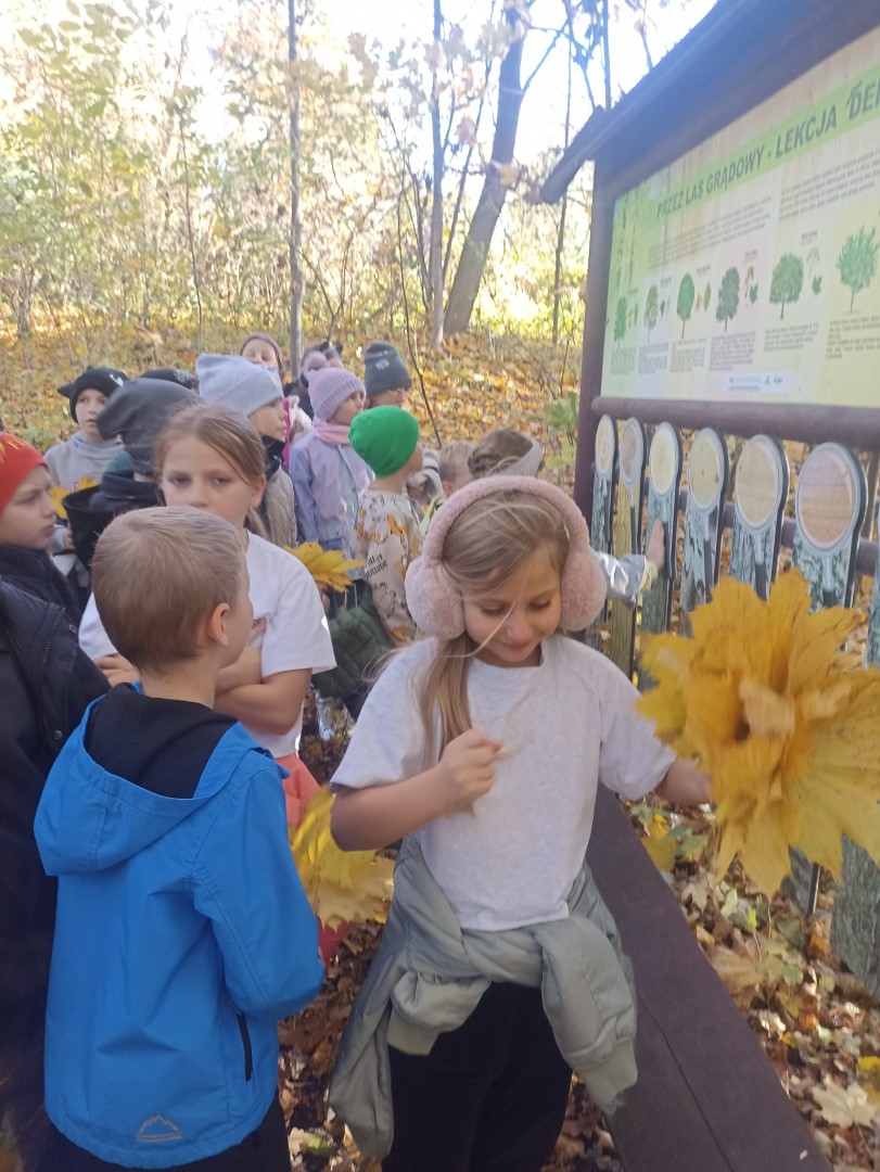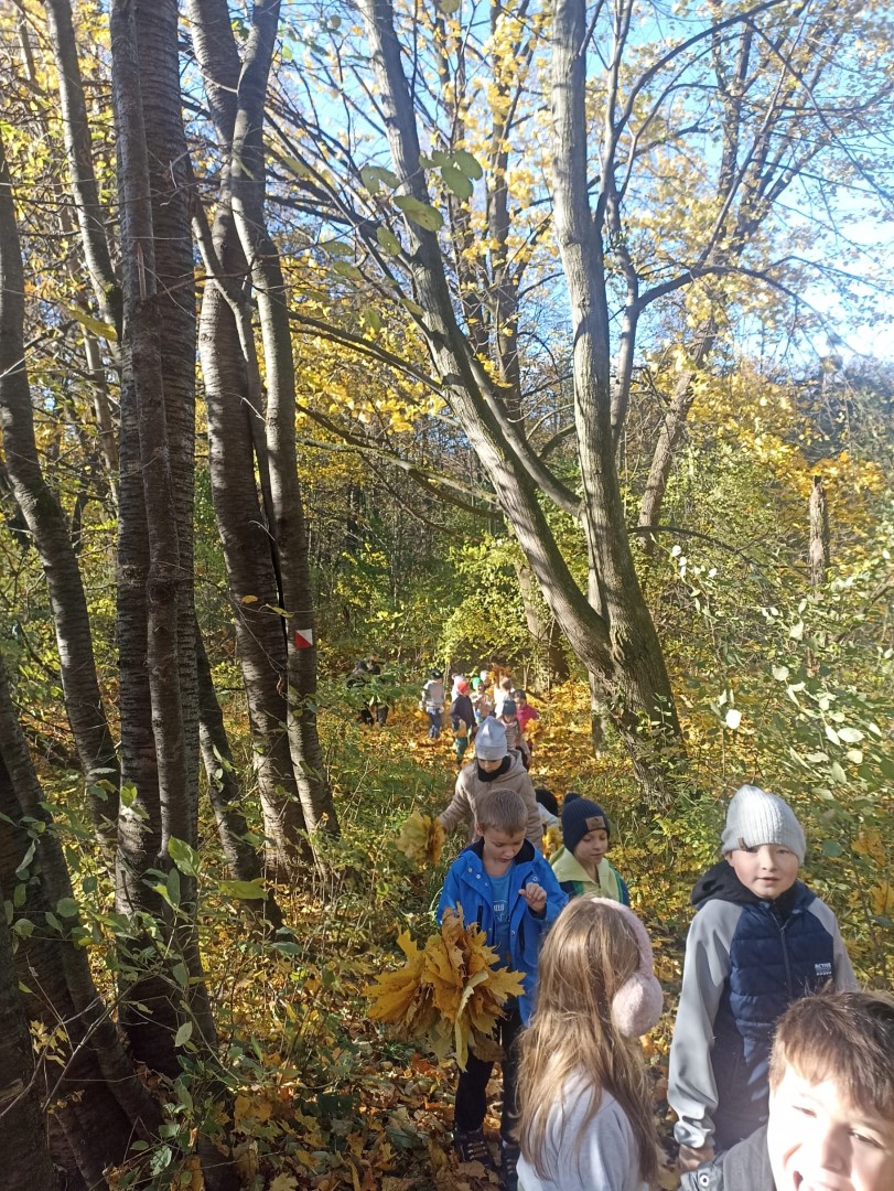 Podczas spaceru po ścieżce przyrodniczej uczniowie poznawali warstwy lasu, tropili ślady jesieni i zbierali dary natury. Pogoda dopisała, a dobre humory nie opuszczały nikogo!