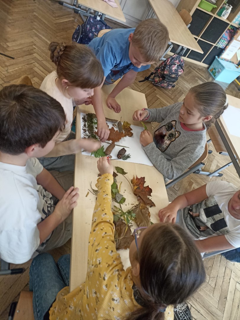 Po powrocie do szkoły dzieci, pracując w grupach, stworzyły piękne prace plastyczne z leśnych skarbów. Nauka, ruch i zabawa w jednym! ![]()
