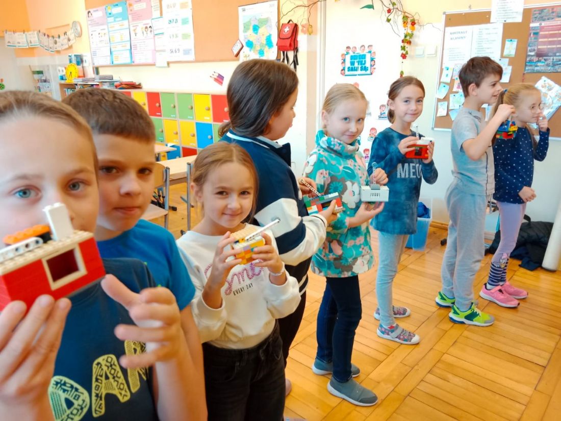 Dzisiaj w klasach 1 i 2 odbyły się zajęcia edukacyjne oparte na klockach LEGO. Przeprowadzili je instruktorzy z EDUKIDO. Uczniowie wykazali się dużą kreatywnością i pomysłowością podczas pracy z klockami LEGO. Warsztaty te nie tylko dostarczyły uczniom świetnej zabawy, ale także pomogły w rozwoju ich umiejętności społecznych i logicznego myślenia.