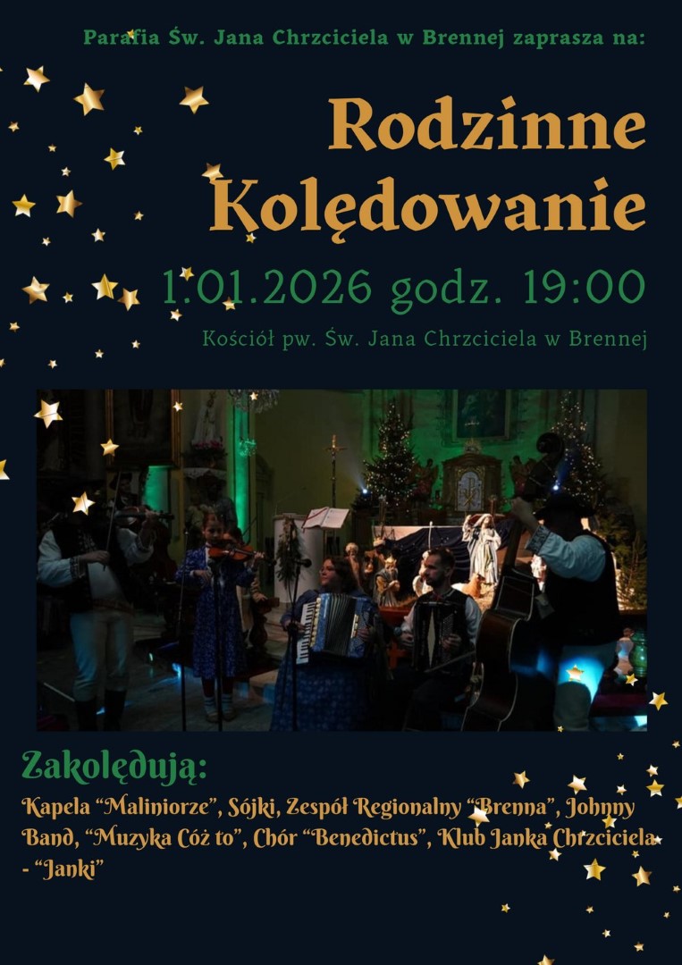 Okres świąteczno-noworoczny w Gminie Brenna to czas bogaty w wydarzenia kulturalne, muzyczne i religijne, które na stałe wpisały się w lokalną tradycję. Mieszkańców oraz gości zapraszamy do wspólnego przeżywania atmosfery świąt Bożego Narodzenia oraz Nowego Roku poprzez udział w koncertach, jarmarkach, jasełkach i spotkaniach kolędowych.